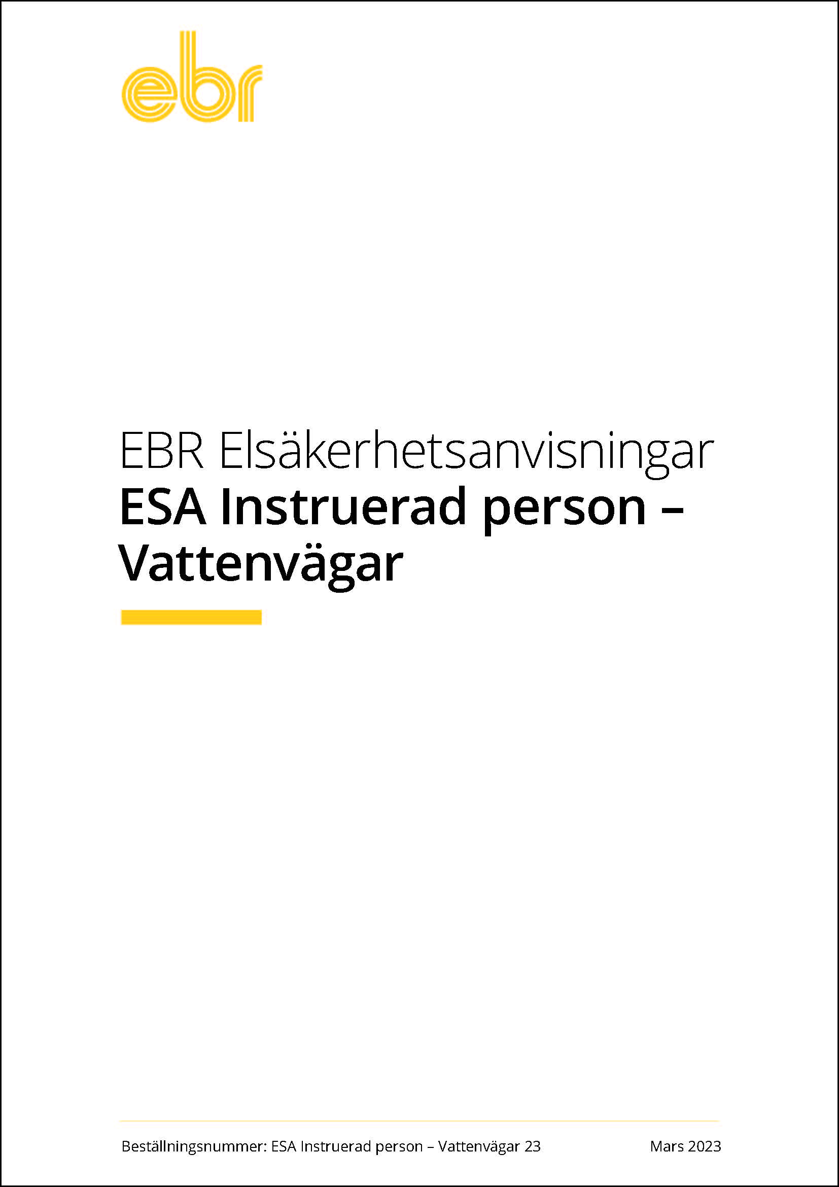 EBR:s elsäkerhetsblankett EBR ESA Överenskommelse om tillträde - Vattenvägar. Reglerar förhållandet mellan beställaren och entreprenören kring säkerhetsbestämmelser, kontaktuppgifter och kunskapsprov.