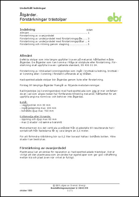 EBR Förstärkning trästolpar - U 304C. Anvisningar för förstärkning av trästolpar.