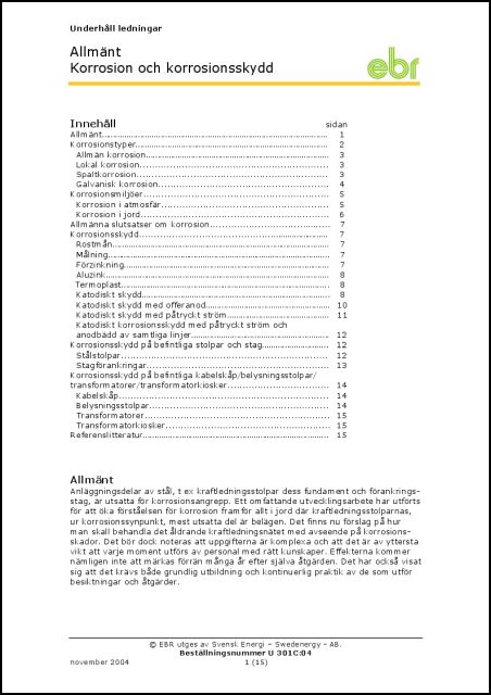 EBR Korrosionsbesiktning stål - U 303L. Rekommendationer och anvisningar för korrosionsbesiktning av stål.