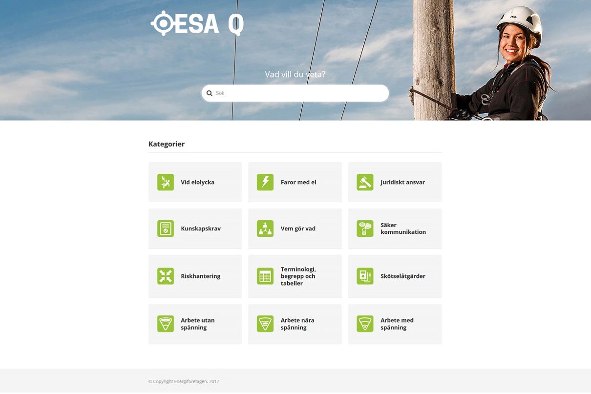 Hantering av risker är en av elbranschens absolut viktigaste frågor, medvetenhet om elsäkerheten måste vara ständigt närvarande. En förutsättning för säkert arbete är en gedigen elsäkerhetsutbildning. Nu lanserar Energiföretagen webbkursen EBR ESA -14 Fackkunnig för säkerhetsarbete i EBR ESA Q, den digitala kunskapsbanken.