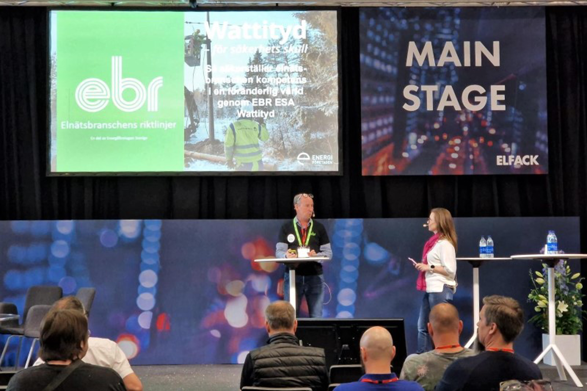 En annan viktig fråga att lyfta på Elfack var elsäkerhet och vikten av EBR och EBR-ESA. Helena Jacobsson, produktägare Wattityd, och Christer Gruber, sakkunnig EBR, pratade om detta på seminariet ” Så säkerställer elnätsbranschen kompetens i en föränderlig värld genom EBR ESA, Wattityd”.